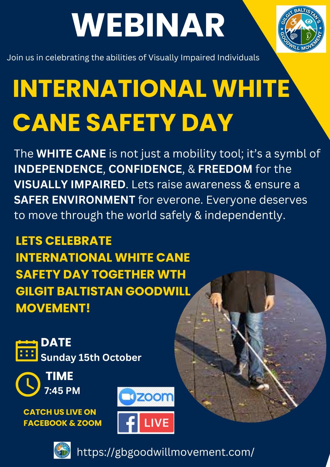 On the 15th of October, International White Cane Day, Gilgit Baltistan’s Goodwill Movement conducted a webinar for People with Visual Impairments moderated by Mehwish Sarwar.