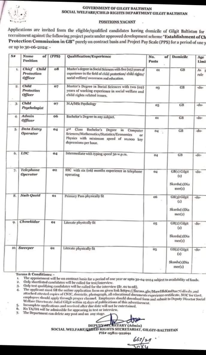 On the 10th of October, the Social Welfare Department of Gilgit Baltistan issued a job vacancy notice, which we received today. This notice should be